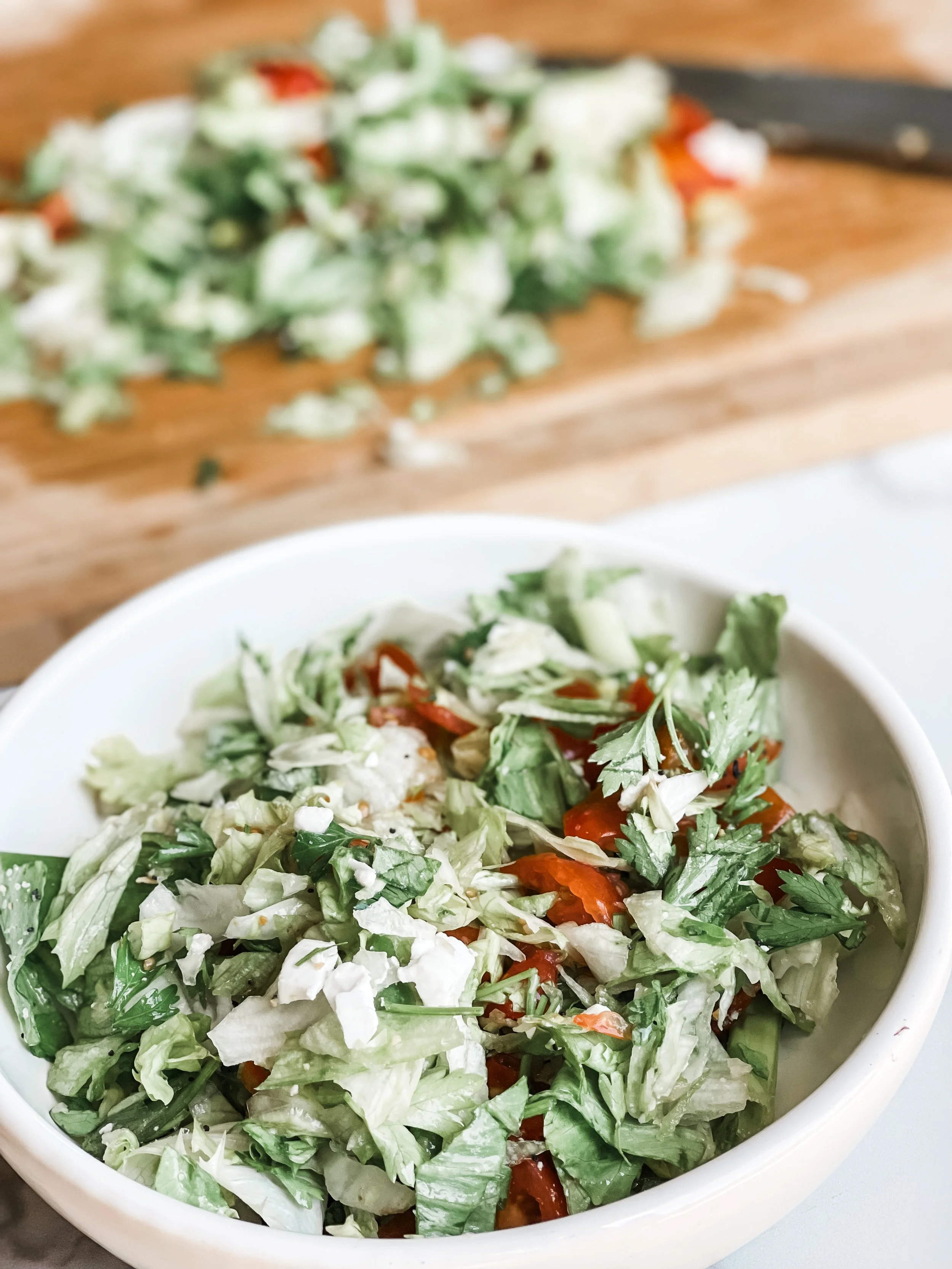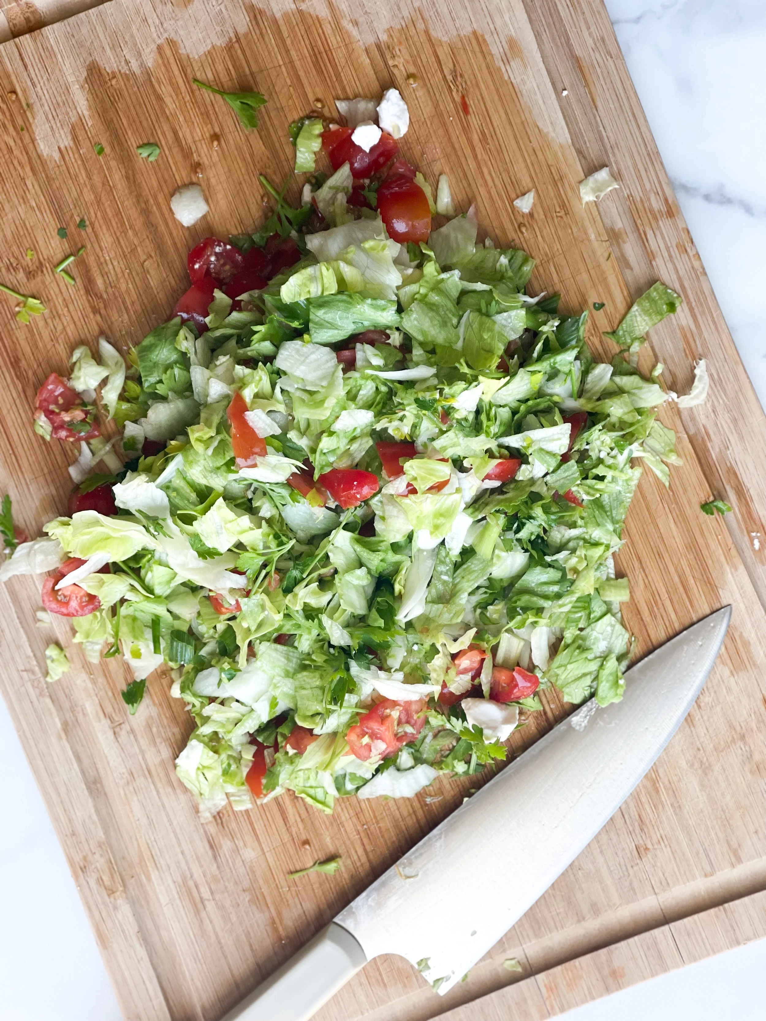 I love a good ice berg wedge but it’s hard to eat them and get the flavors from the salad in every single bite! I decided to make a chopped version with the classic flavors of an iceberg wedge, but make it plant based and fully focused on giving your body the best ingredients in bite size combos. You may think ice berg isn’t as valuable as other leafy greens, but ANY and ALL leafy greens are amazing supports for digestion and weight loss.
